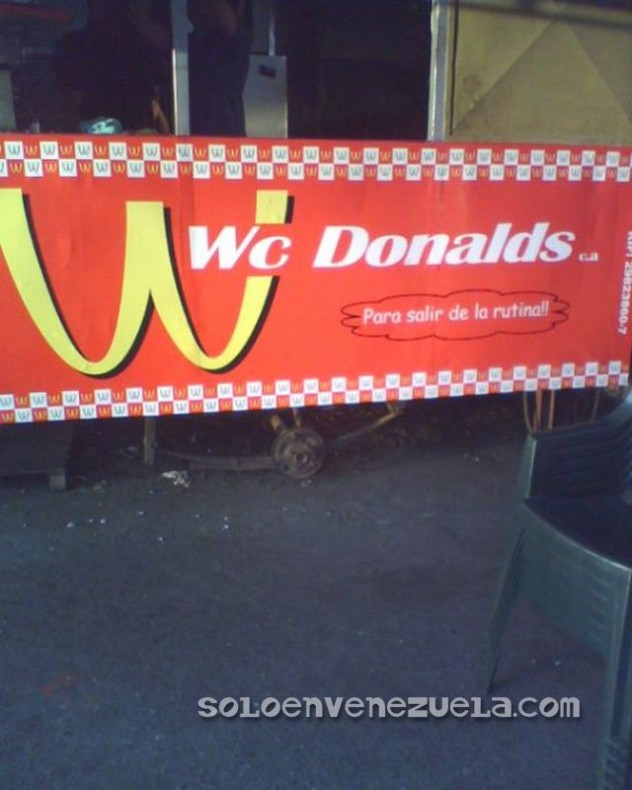 Yo recuerdo que mi prima estaba viendo un anime... creo que Ranma y vi que ahi aparecia una W en vez de M en un McDonald y dije lo mismo del WcDonalds xDDDDDDD