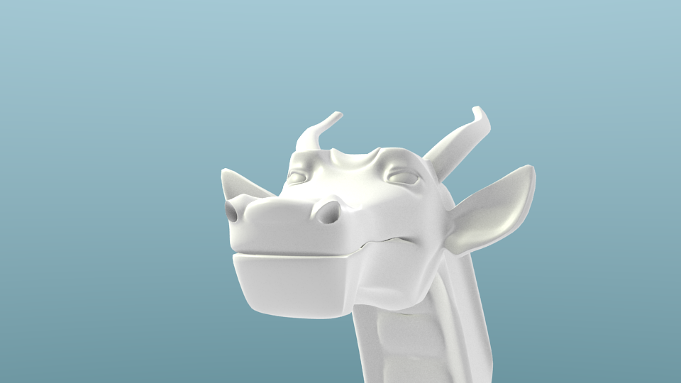Como sea, yo modelee un dragon/vaca... que no deberia parecer una vaca, solo llevo la cabeza.. el cuerpo lo hare despues, junto con ponerle un escenario y textura y todo lo deams